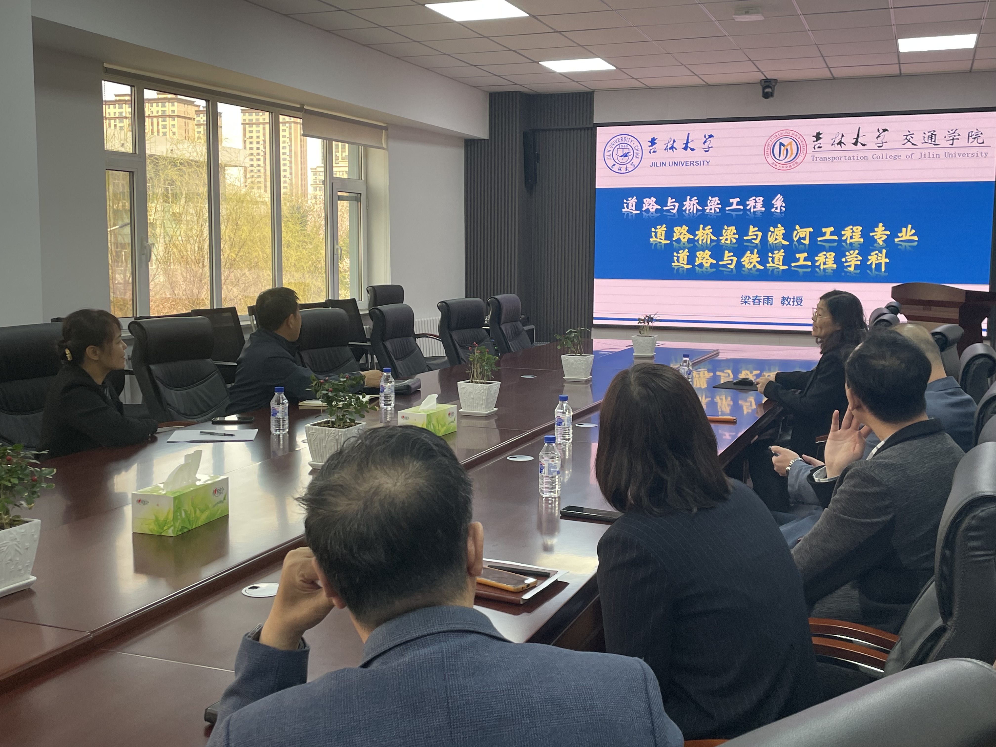 的概况,梁春雨老师介绍了道路与桥梁工程系的发展、师资、试验平台、教学科研和人才培养等方面的情况,师郡老师也对山东理工大学建筑工程与空间信息富豪娱乐城
