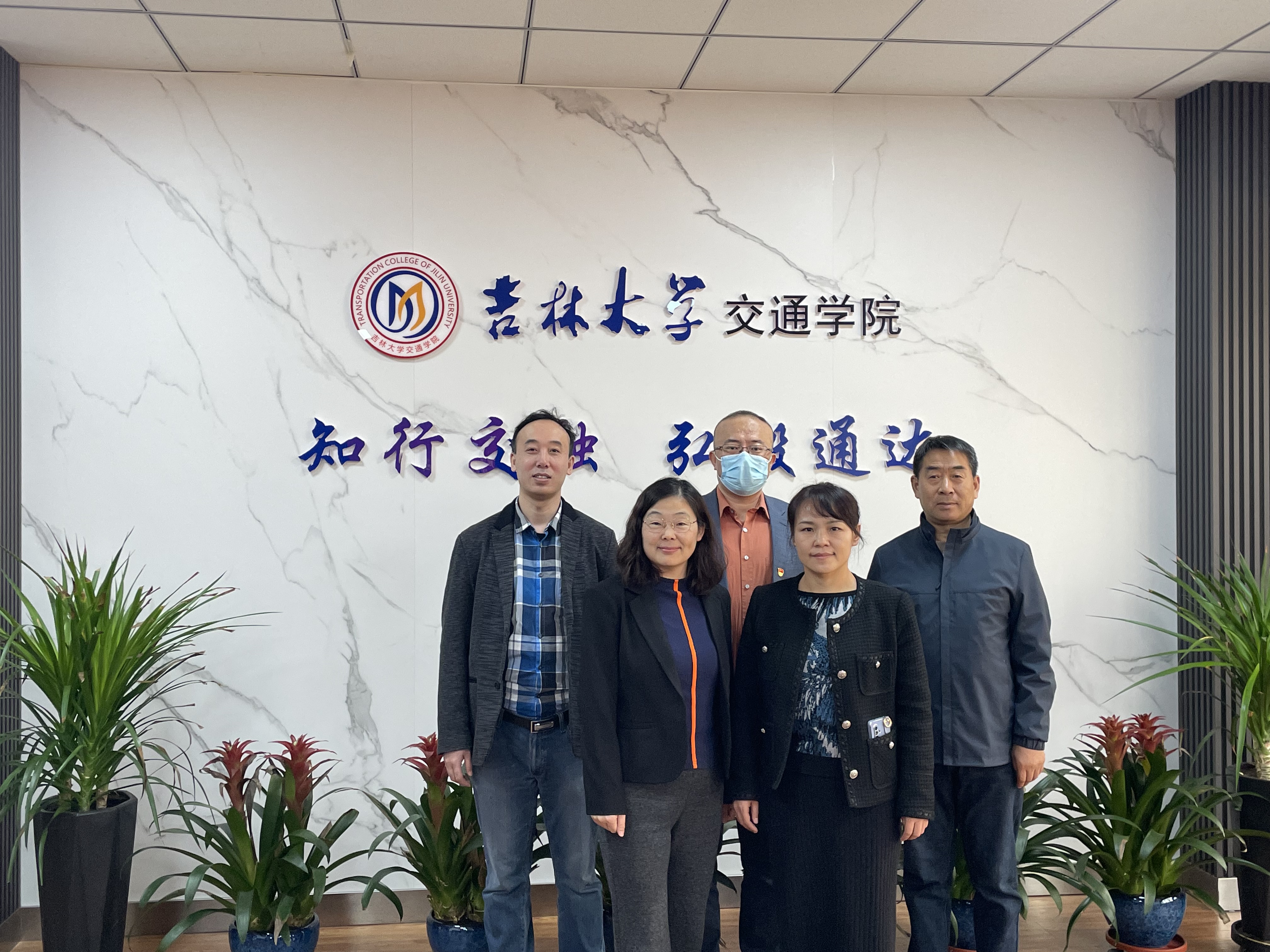 副院长宫亚峰教授、科研办麻吉河主任、道路与桥梁工程系书记梁春雨老师、副主任吴春利老师和实验室主任毕海鹏老师在富豪娱乐城