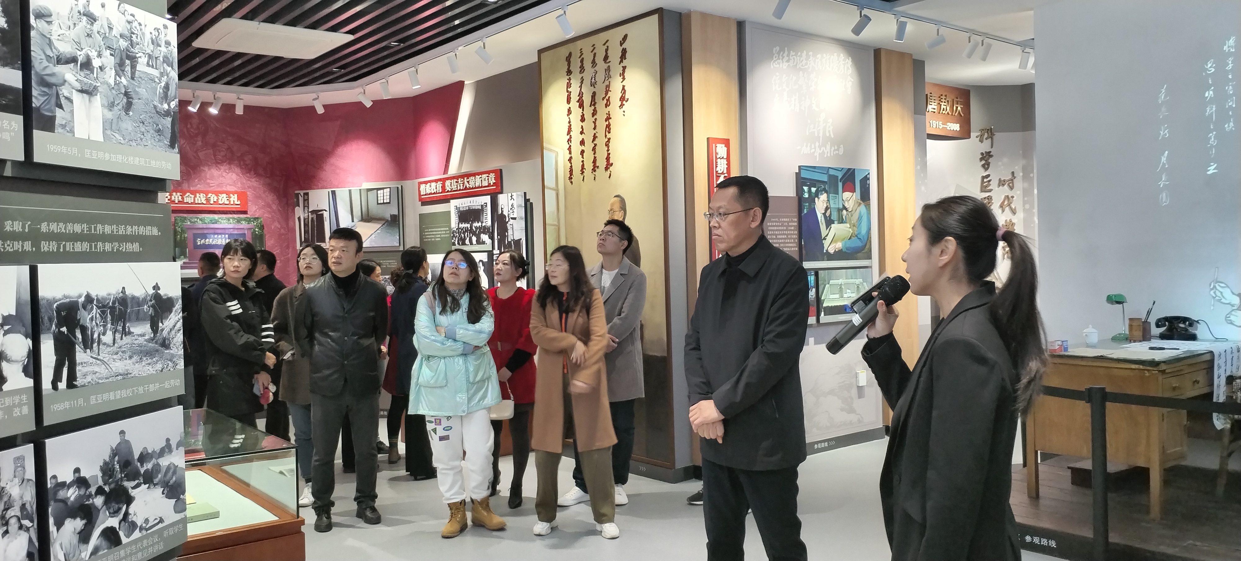 讲解员引领教职工们来到“创校先驱”展区,为大家讲述了六所富豪娱乐城