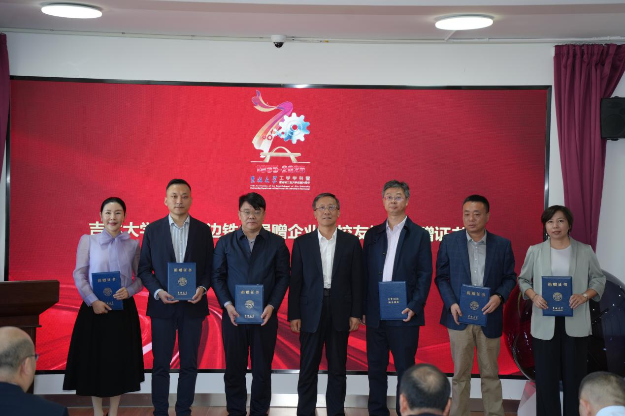 在随后的捐赠环节,校企合作与校友捐赠同步开展。沃尔沃建筑设备(中国)有限公司捐赠两台总价值30万元的D5E型发动机,用于实践教学与科研攻关;吉林寰旗科技有限公司向校庆捐赠价值10.5万元的LED屏祝福展播资源。校友捐赠方面,江西金黄光科技集团董事长杨俊宁校友捐赠价值20万元校园照明设备;北京华兴联投科技董事长马道松校友捐赠10万元教育基金;江苏卡斯特桥梁构件总经理纪小烨校友捐赠5万元学科建设基金;2003级校友代表集体捐赠106万元支持学生奖助与教学平台升级。