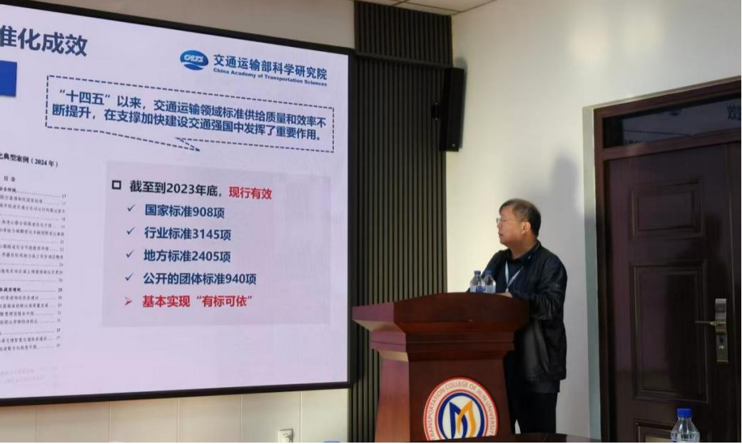 在讲座中,孙小年详细解读了《交通运输标准提升行动方案(2024—2027年)》《交通运输标准管理创新行动方案》等最新政策文件,强调要围绕“智慧交通、绿色低碳、安全应急、多式联运”等重点领域,加快关键标准研制与实施,推动标准化工作从“有标可依”向“优标引领”转变。他还介绍了“十五五”交通运输标准化发展规划的编制进展,指出未来将重点加强国际标准转化、标委会管理、团体标准建设等方面工作,构建适应高质量发展的新型标准体系。
