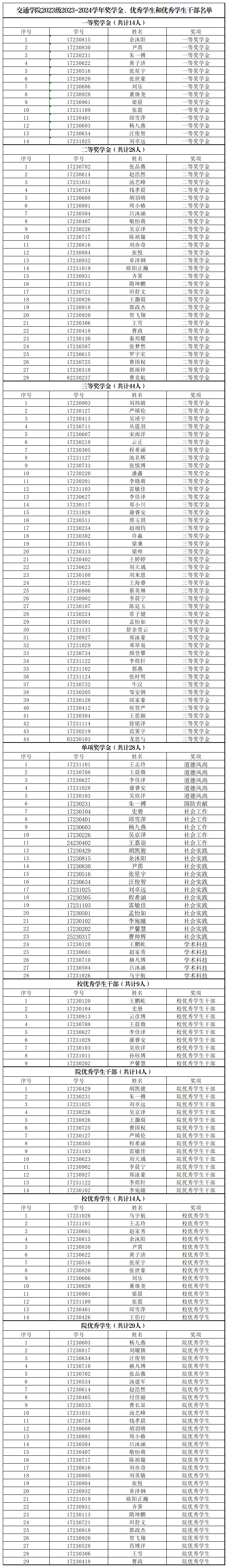 2023级2023-2024学年奖学金名单如下: