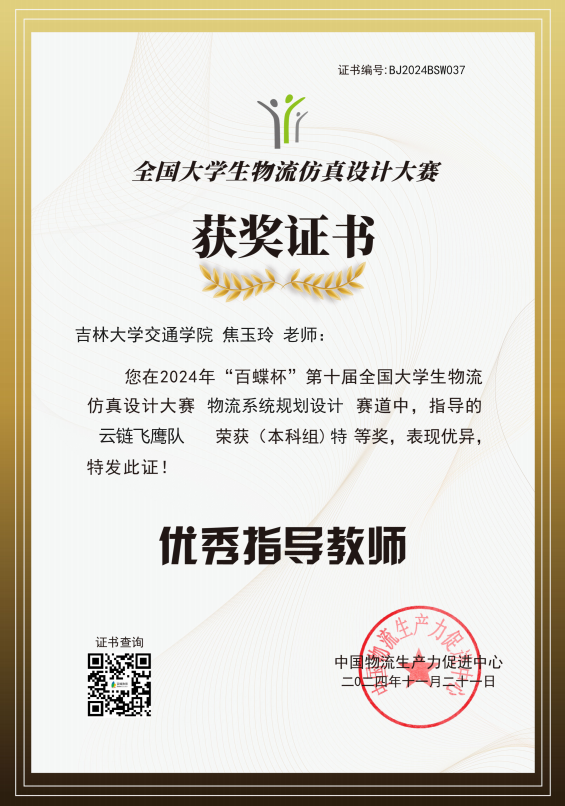 焦玉玲老师指导的参赛团队喜获国家级特等奖。