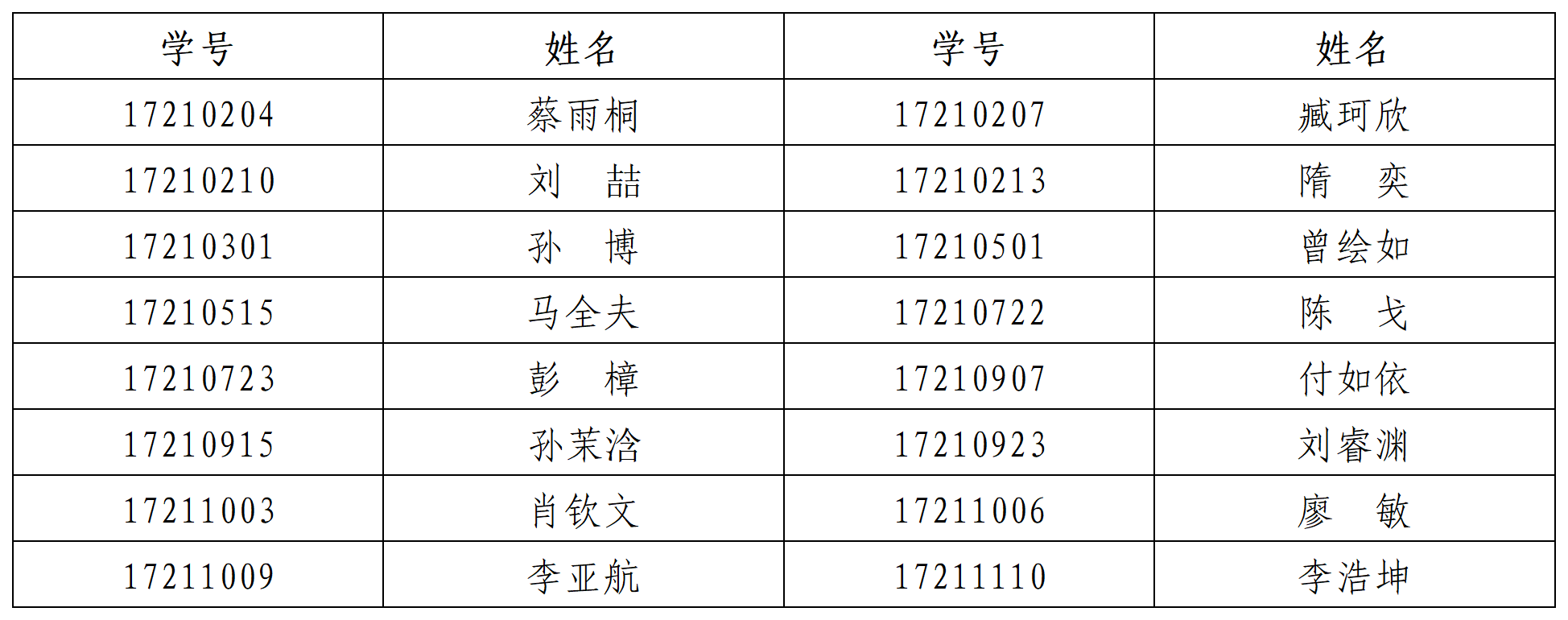 2025届优秀本科毕业生,现将名单公示如下(按照学号进行排序):