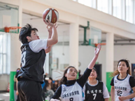 女子篮球队队员张连欣同学、刘梦同学、冯昭慧同学默契配合、齐心协力,展现出了昂扬的斗志。