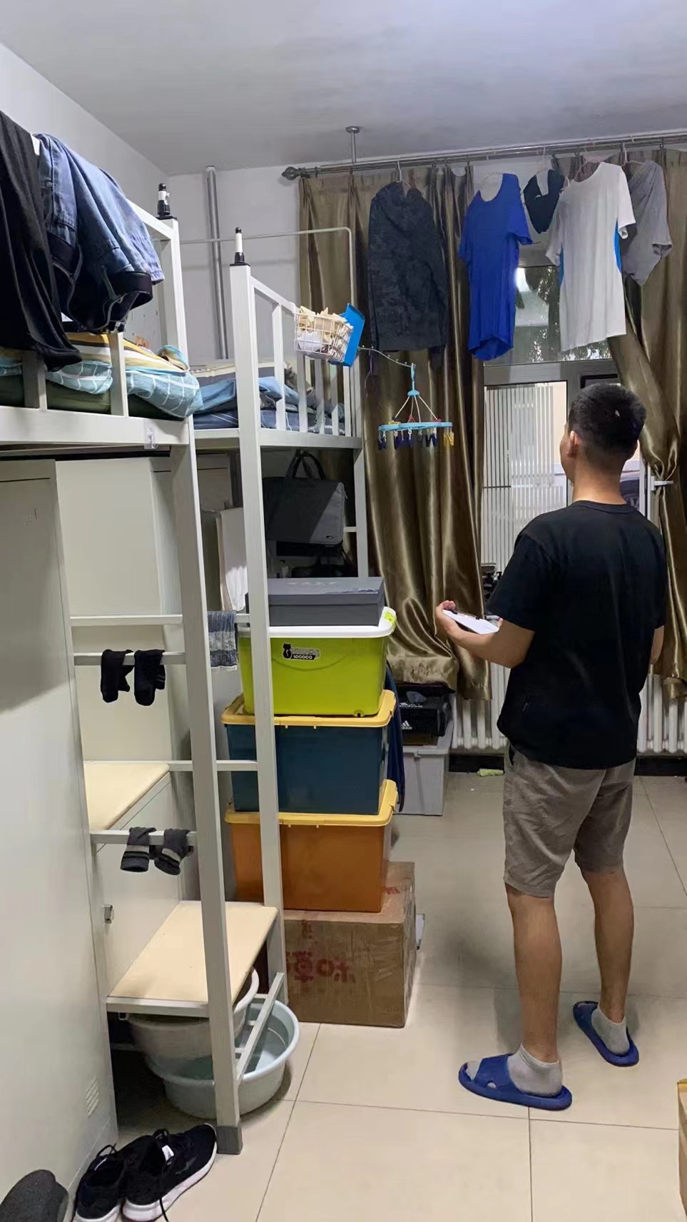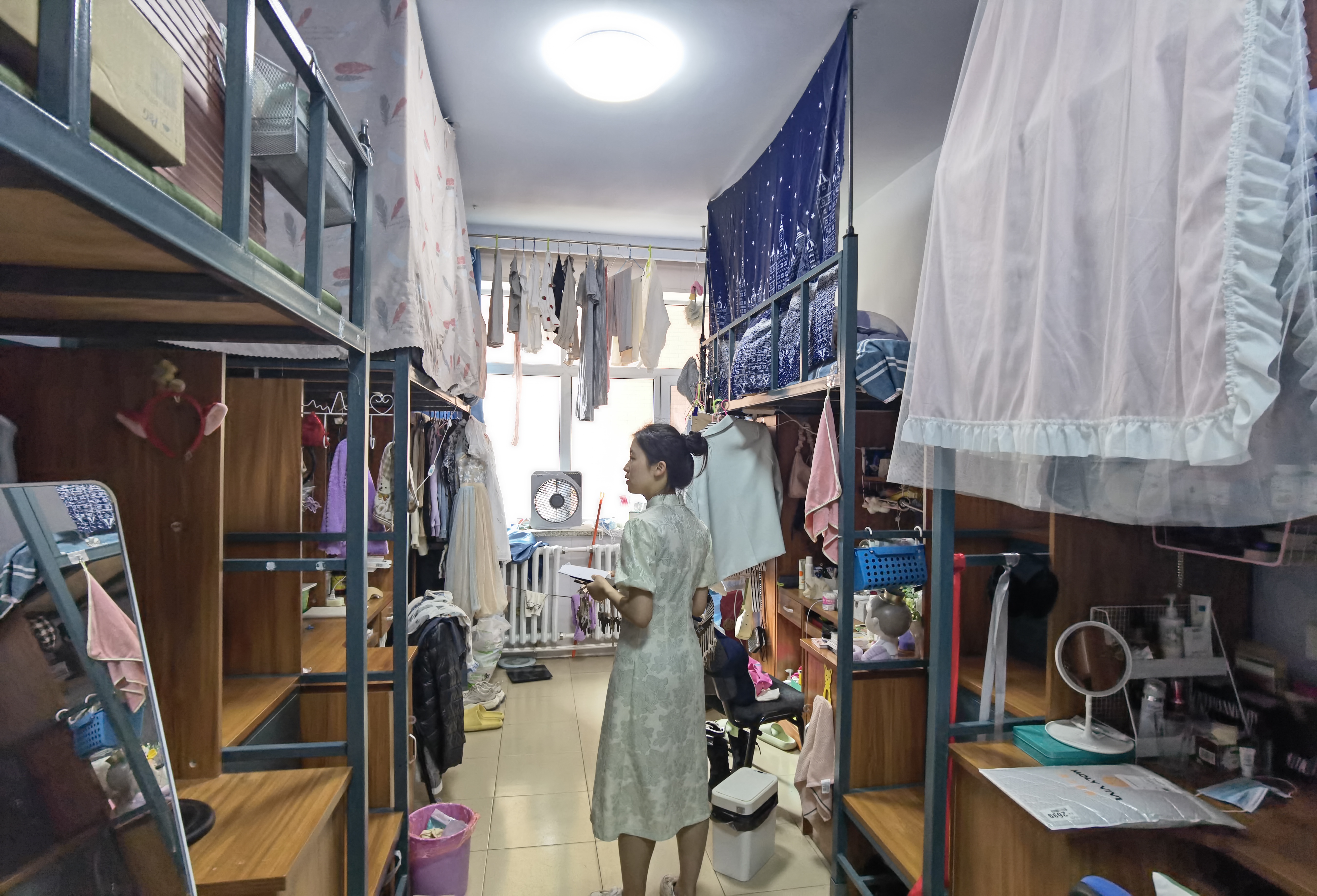 本次检查基本覆盖所有研究生公寓,检查重点是是否存在违章电器等的使用。查寝结果显示,大部分寝室没有使用违章电器的情况,对发现的极少数寝室存在的违章电器予以没收。大多数寝室整体环境良好,但也有个别寝室存在东西摆放不整齐、空气不够清新、电线摆放混乱,多个电器同时插在一个插排等问题,对存在问题的地方,孙超老师与同学们进行了良好的沟通,对存在隐患的寝室要求限期整改,重点提醒学生注意夏季学生寝室用电规范。